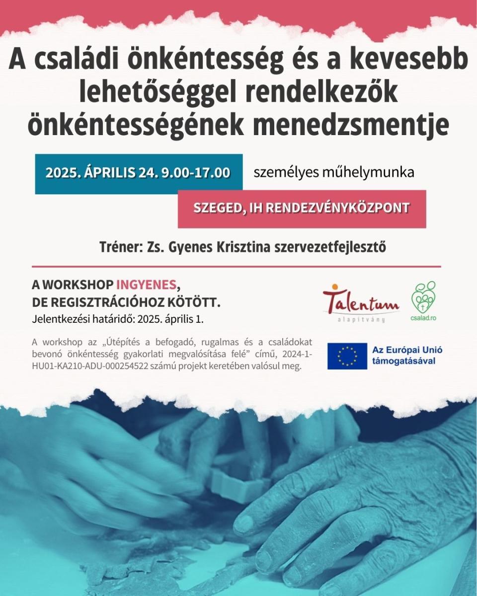 A workshop az Európai Unió támogatásával, az „Útépítés a befogadó, rugalmas és a családokat bevonó önkéntesség gyakorlati megvalósítása felé” című, 2024-1-HU01-KA210-ADU-000254522 számú projekt keretében valósul meg.