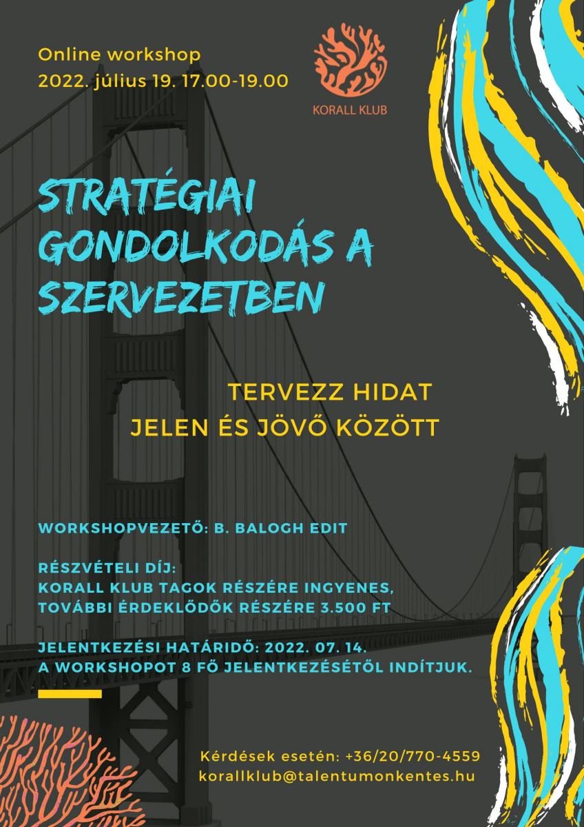 Workshopunkon közösen gondolkodunk el azon, hogy milyen a stratégiai gondolkodás egy gyorsan változó, sokszor kiszámíthatatlan világban, hogy hogyan lehet alkalmazkodni és rugalmasnak lenni a célok elhomályosulása nélkül.