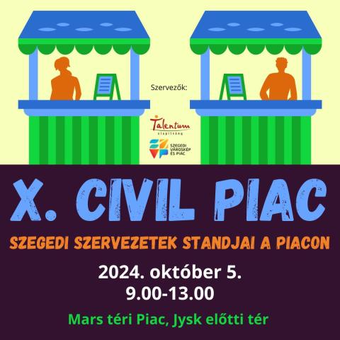 Idén már tizedik alkalommal kerül megrendezésre a Talentum Alapítvány és a Szegedi Városkép és Piac közös rendezvénye, a Civil Piac!